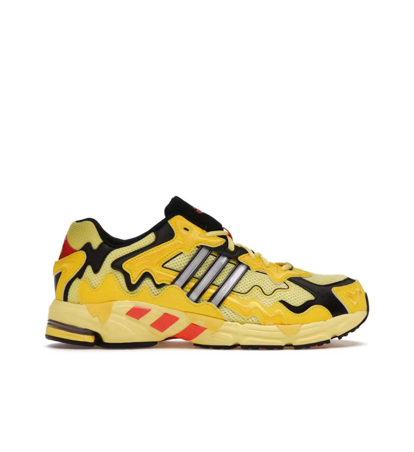 The entire adidas Response CL Bad Bunny Yellow is decorated with well-known ice cream and "El Ojo" references, particularly adding elements on its upper that drip over the sole unit.