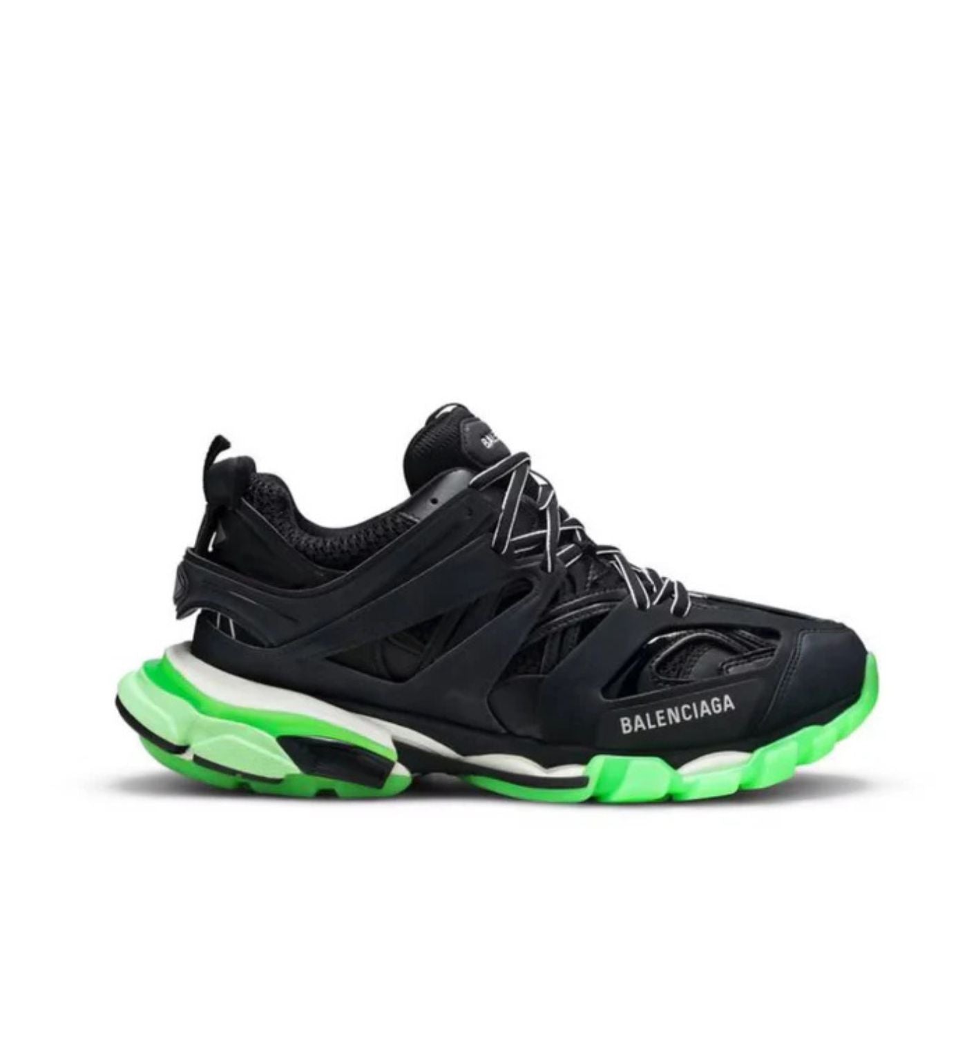 The Balenciaga Track Black Glow-In-The-Dark sneaker illuminates not just your path but also your style quotient. Designed for the night owls and the fashion-forward, this sneaker features an innovative glow-in-the-dark element that transforms your every step into a display of brilliance. The black upper, made from high-quality materials, ensures durability and a snug fit, while the glow-in-the-dark accents promise to turn heads and spark conversations.