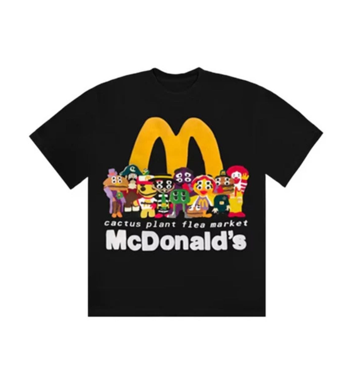 This Cactus Plant Flea Market Cactus Buddy! and Friends T-shirt was made in collaboration with McDonald's for the FW22 season. The short-sleeve style is printed with artwork of the fast food chain's cast of characters above each collaborator's name.
