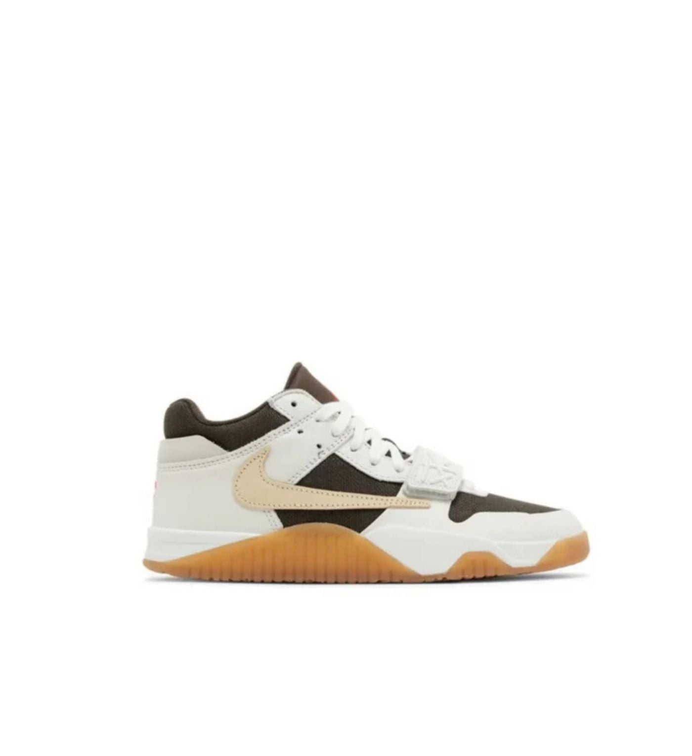 The Jordan Jumpman Jack TR 'Sail' delivers a neutral colorway of Travis Scott's debut signature shoe. Secured with a traditional lace closure and an adjustable midfoot strap, the upper features dark brown canvas construction with off-white leather overlays and a reverse beige Swoosh on the lateral side.