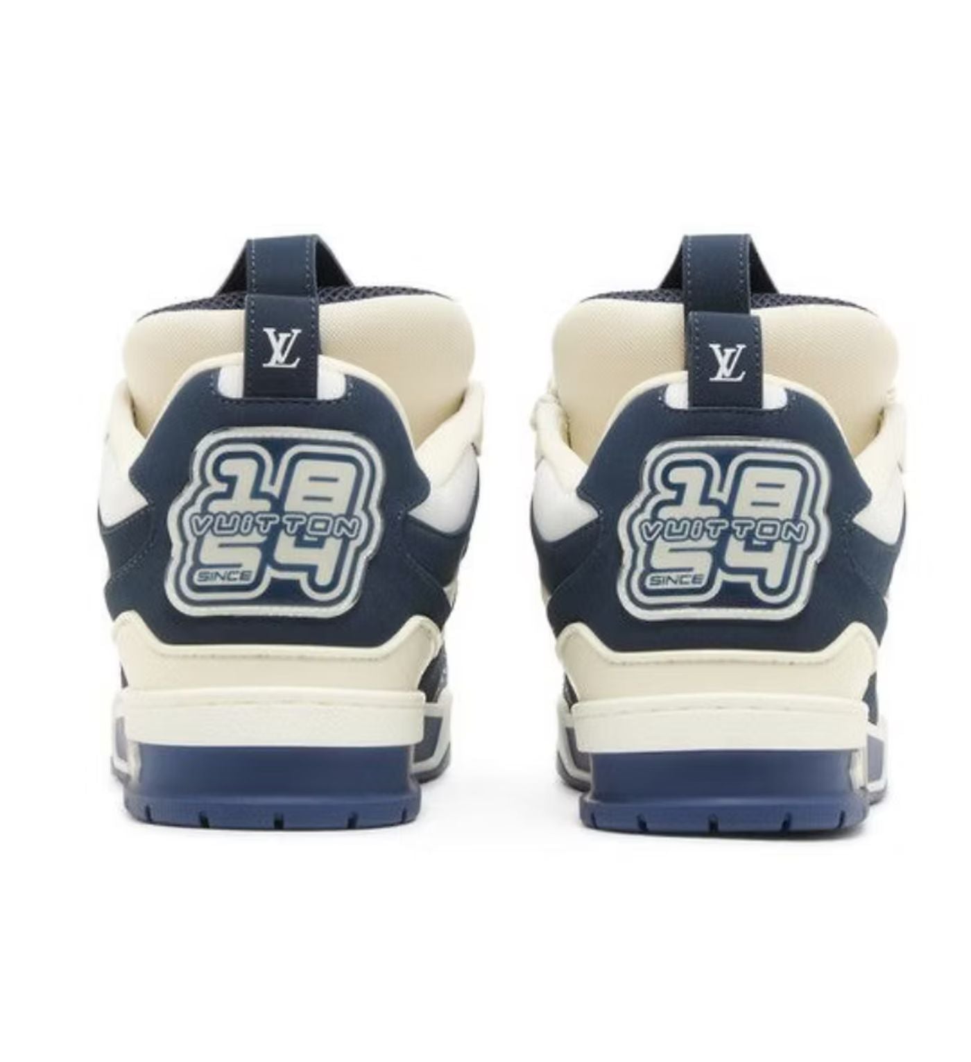 The Louis Vuitton LV Skate Sneaker Marine White embodies the spirit of coastal elegance and urban chic. Dressed in a sophisticated palette of marine and white, this sneaker marries the laid-back vibe of skate culture with Louis Vuitton's unparalleled luxury. Its design, while paying homage to classic skate shoes, is elevated with premium materials and the unmistakable LV craftsmanship.
