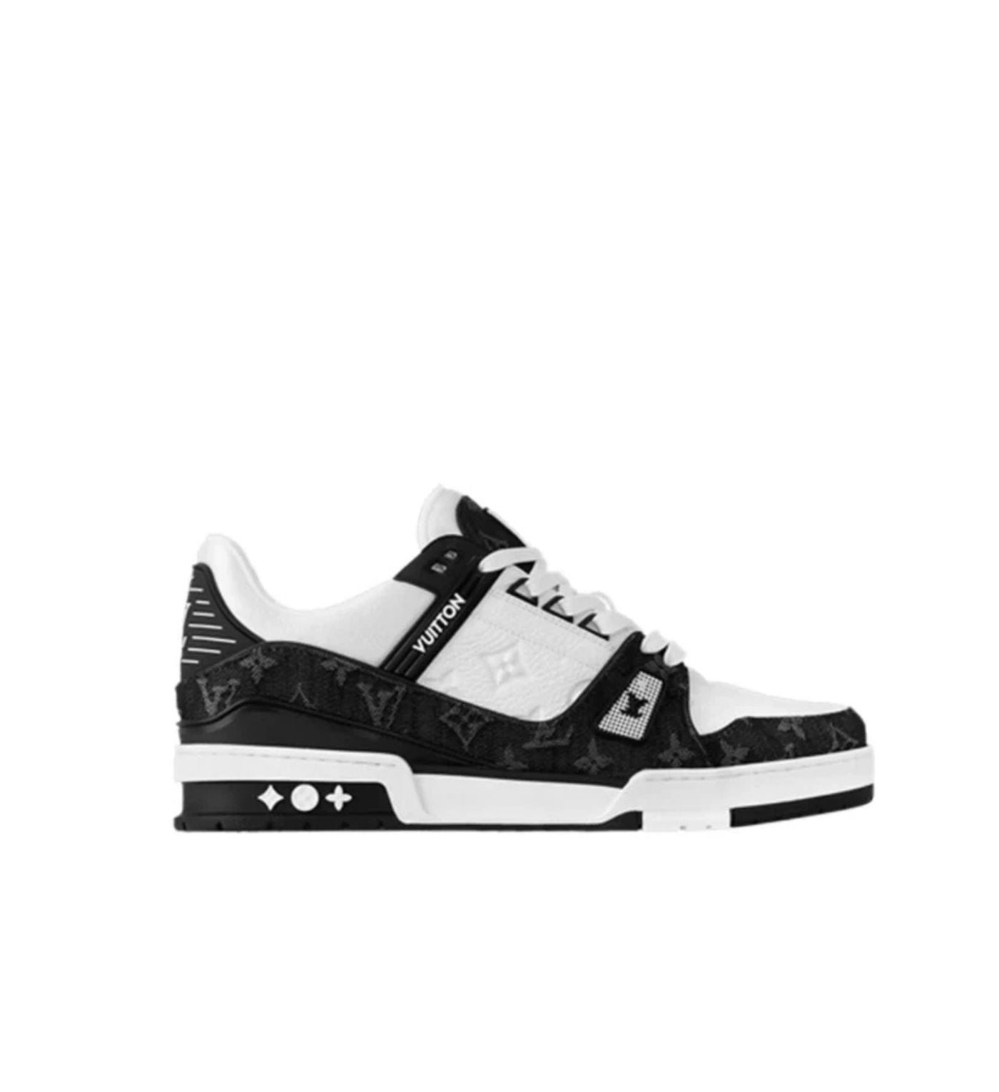 The Louis Vuitton LV Trainer White Black White is a sleek and stylish sneaker that combines luxury and sportswear. The upper is made of premium leather and mesh, with a black and white colorway that gives it a timeless and versatile look. The iconic LV monogram is subtly embossed on the side, adding a touch of sophistication to the design. The midsole is made of lightweight and durable rubber, providing excellent cushioning and support for everyday wear.