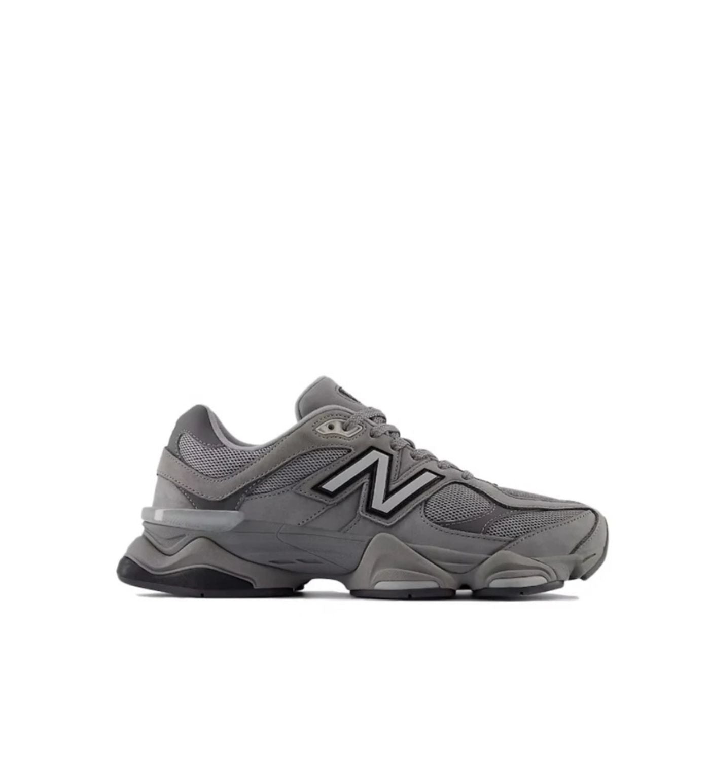 A mix of gray tones, including Castlerock and Shadow Grey, cover the upper and extend over the midsole. Featuring a chunky silhouette and visible tech, the Shadow Grey Castlerock New Balance 9060 combines retro Y2K and futuristic aesthetics.