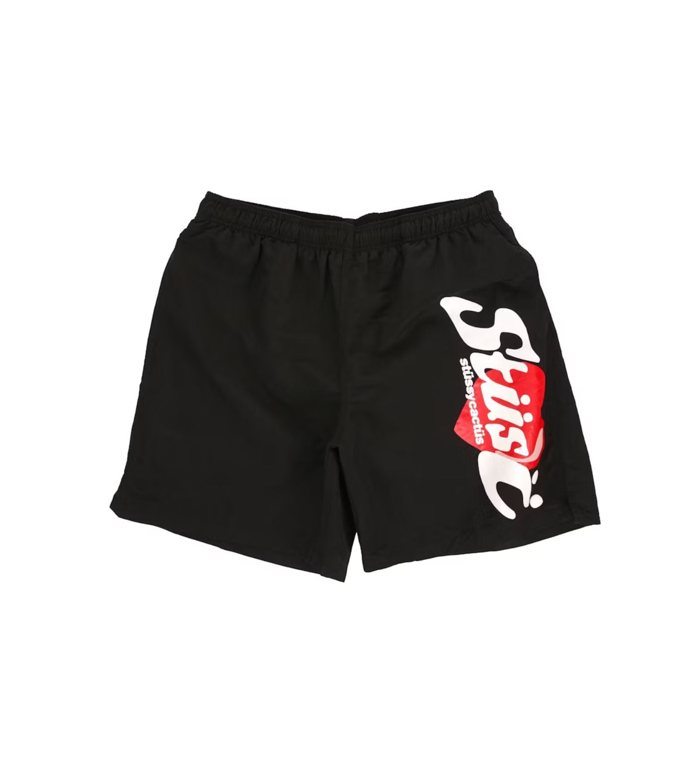 The summer of 2021 marked the return of Stüssy x Cactus Plant Flea Market, a long-awaited collab bringing together two streetwear powerhouses. Their eight-piece lineup leaned into bold visuals and maximalist logos. This pair of black water shorts captures that energy, finished with the collab’s Heart Logo on the left leg.