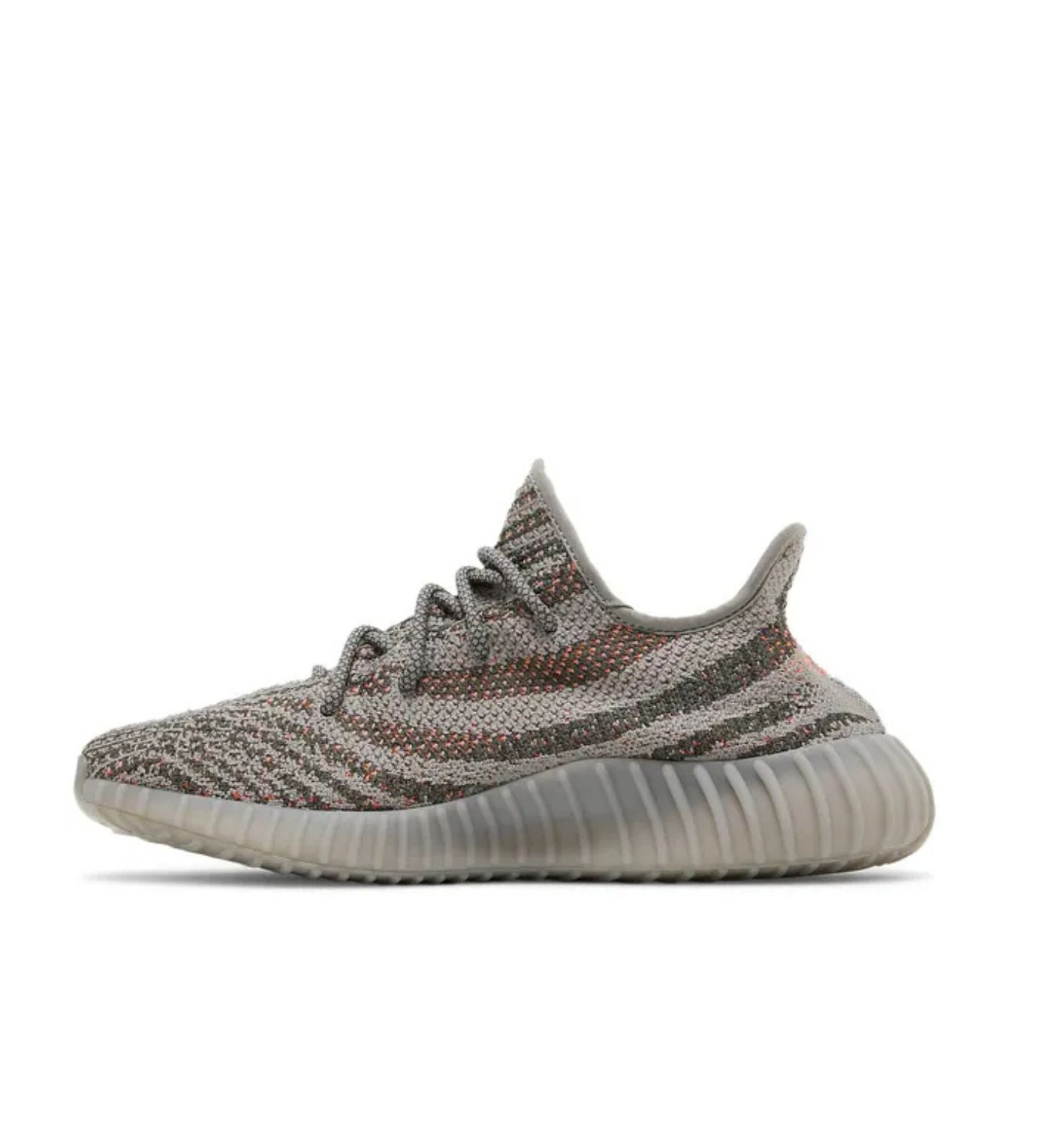 The adidas Yeezy Boost 350 V2 Beluga Reflective builds off of the original Beluga colorway by adding reflective qualities and speckled orange accents to its Primeknit upper. Signature details like a Boost sole and orange side stripe complete the design.