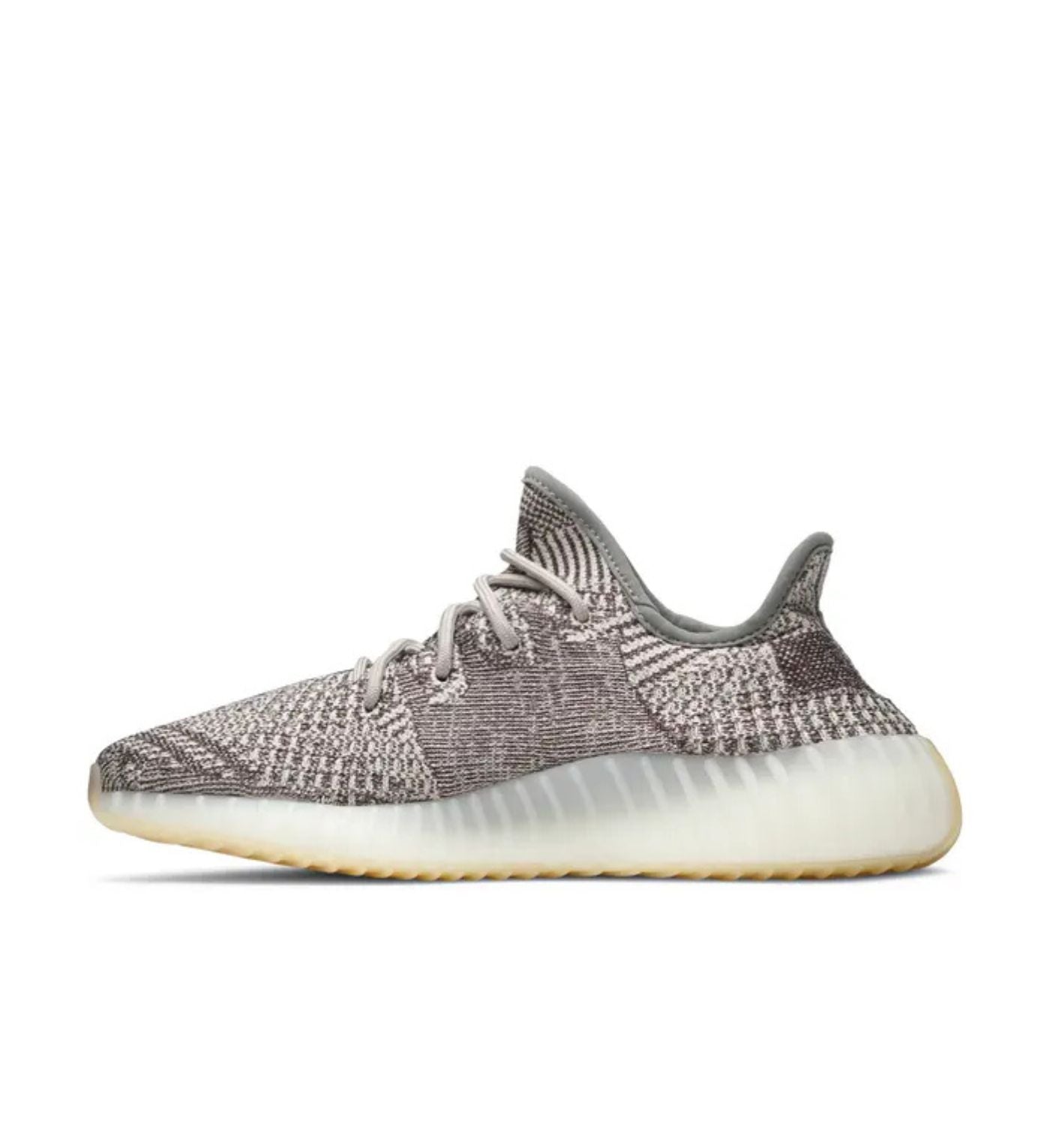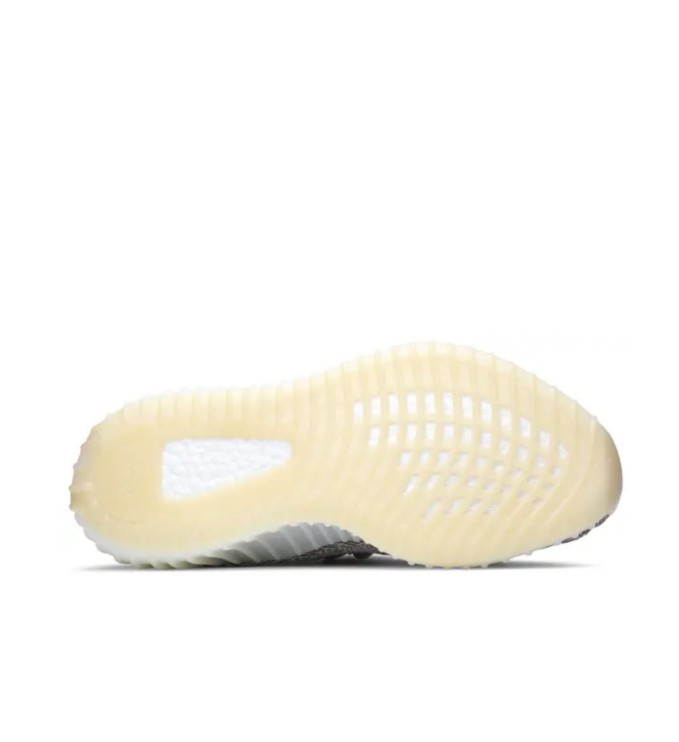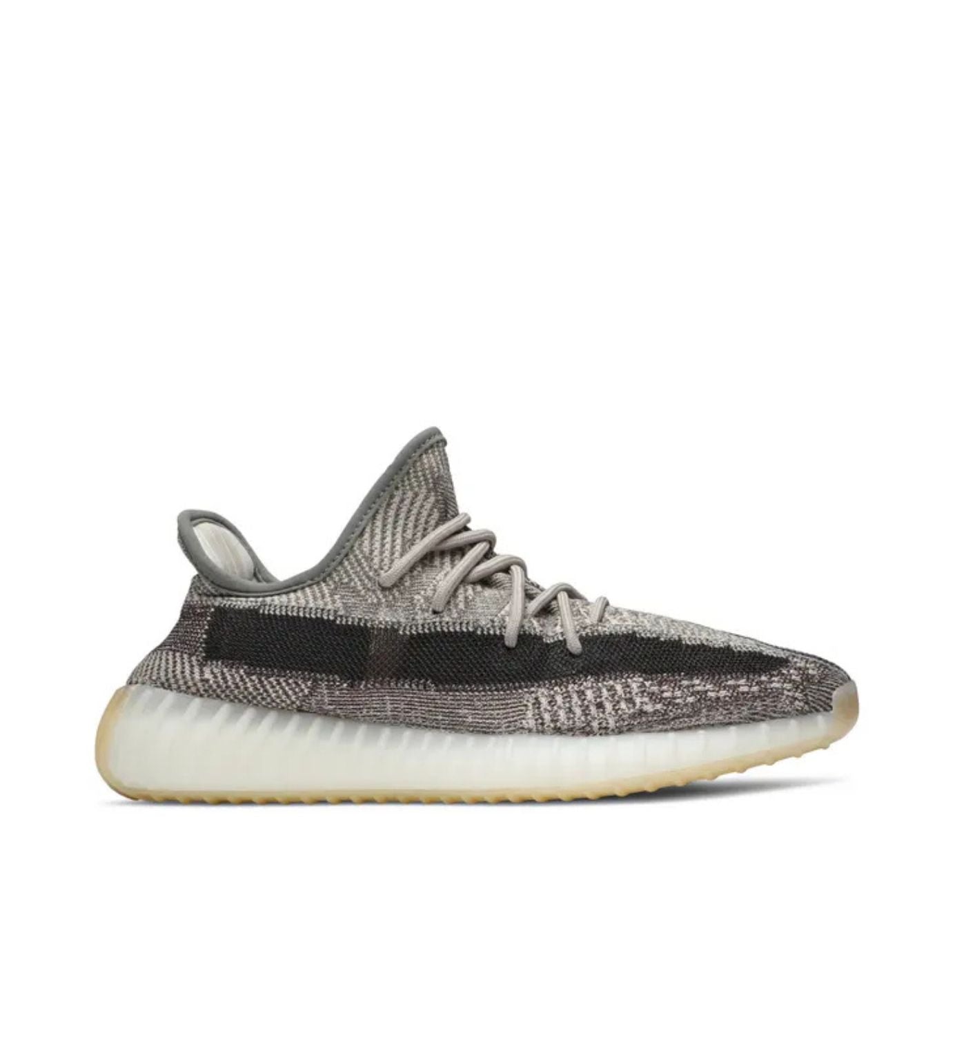This Yeezy 350 V2 is composed of a Zyon Primeknit upper with a dark tonal side stripe. A translucent Boost cushioned sole and cream interior completes the design.